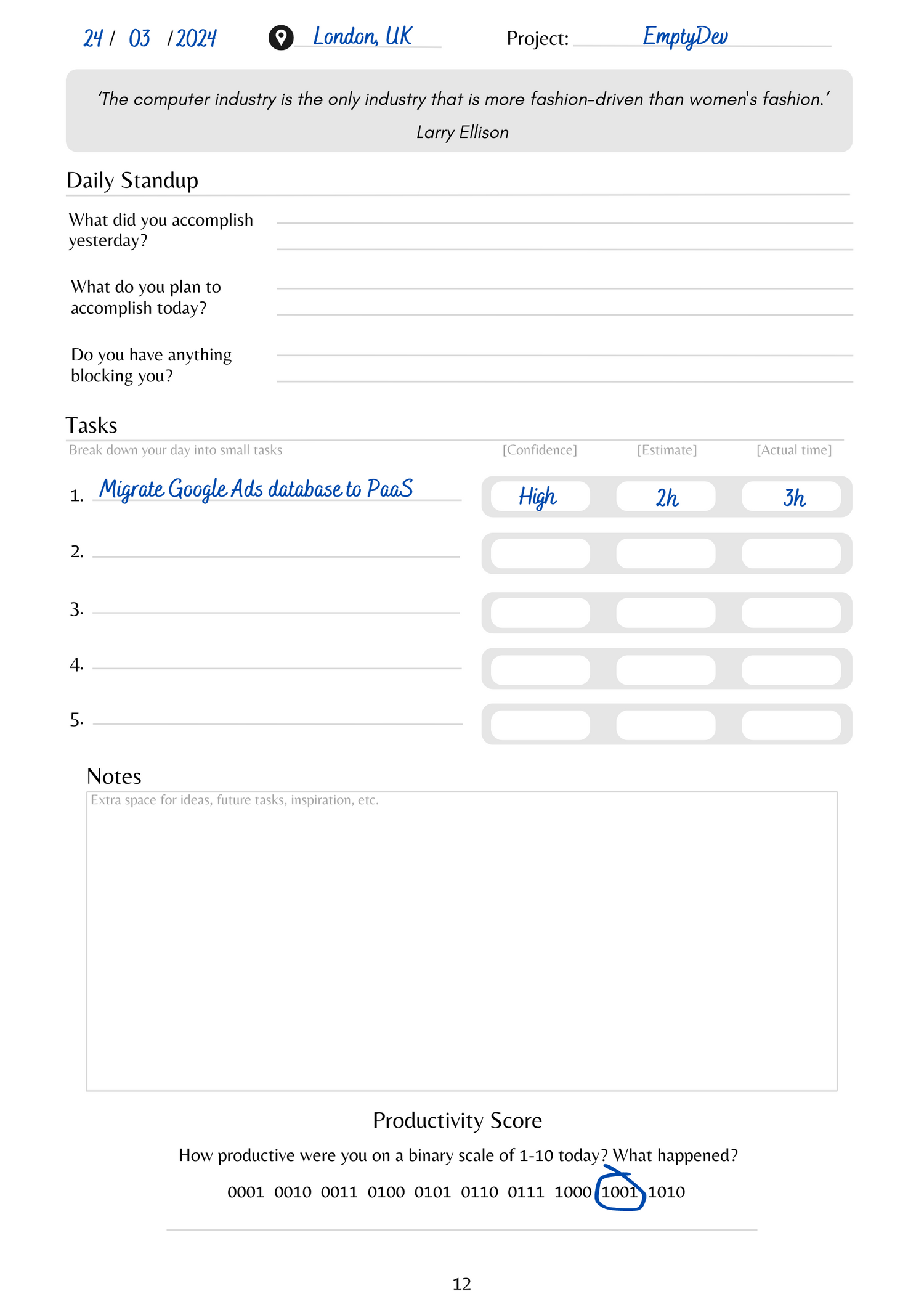 You can't improve what you don't measure. Self-reflect on your productivity today and think of ways to improve.